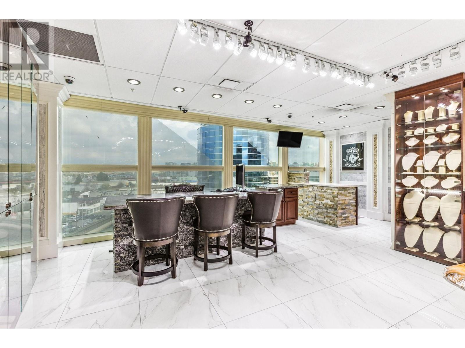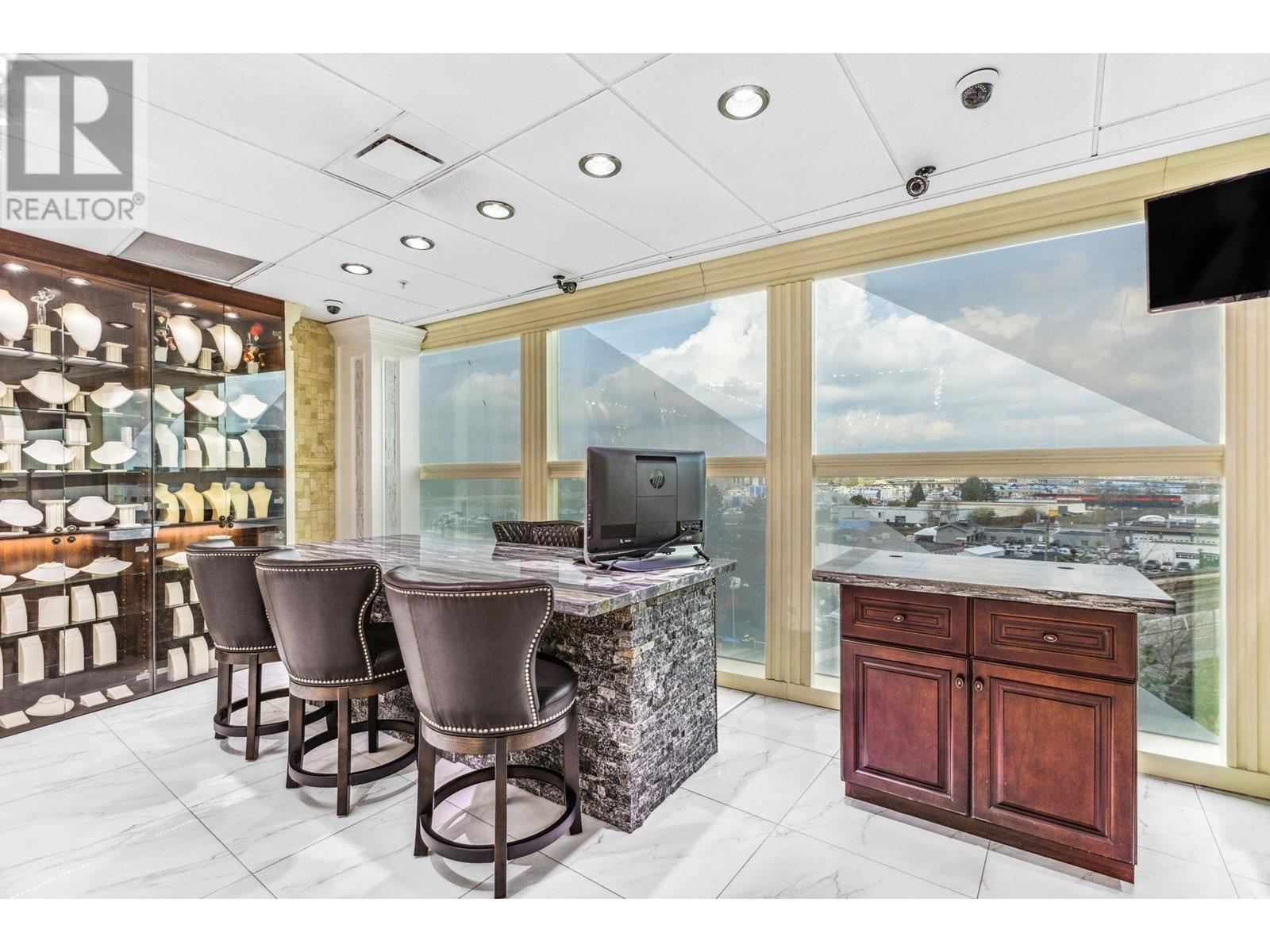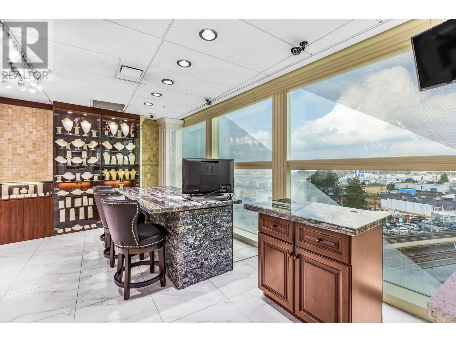 Best and most luxury office/retail space at Aberdeen Square! This exceptional unit offers unblocked panoramic views of the North Shore mountains, cityscape, and water. Meticulously renovated and decorated, it previously served as a customized jewelry showroom. For those seeking more space, an adjacent unit is also available, providing a total floor area of 1479 sq ft. Each unit includes a parking stall pass and enjoys 24-hour security and access to the on-site food court. Connected to Aberdeen SkyTrain station and the Aberdeen Shopping Center, only 2 units in the building has this exceptional view. Call for private viewing. (id:9345)...