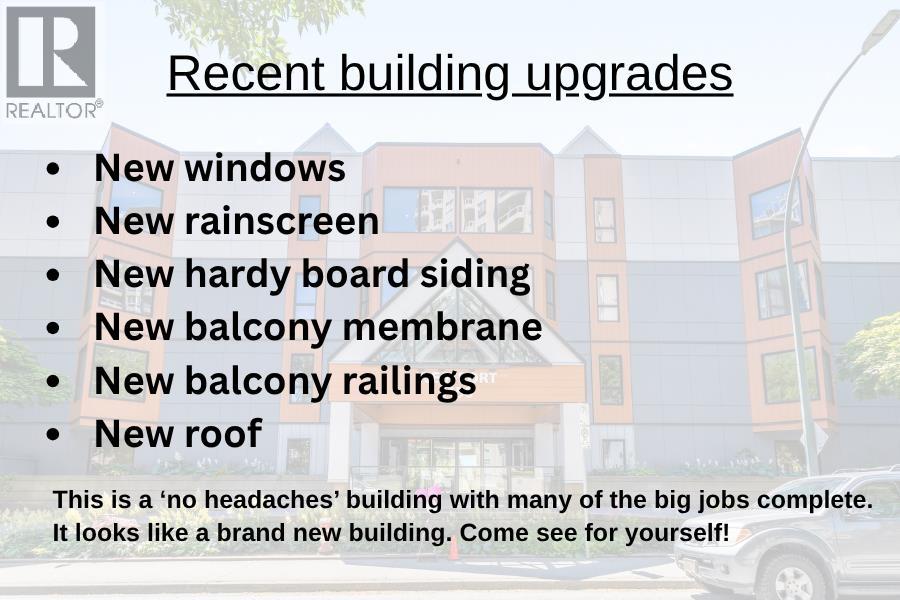 **OPEN HOUSE SUNDAY JAN 11th, 2-4PM** TOP FLOOR at the Westport! This bright and spacious 2 bed, 1 bath home offers 1,089 square ft of open living with 9ft ceilings, updated flooring, modern paint, a renovated kitchen with stainless steel appliances, and a cozy gas fireplace. Large primary bedroom with walk-in closet and dual access ensuite Enjoy peace of mind in one of New West's best buildings! This property has New windows, New siding, New balconies, New roof, and a New rainscreen! Includes 1 parking and a private storage room right outside your door. Steps to the Quay boardwalk, River Market, SkyTrain, shops, and more. Pet friendly! (id:9345)...