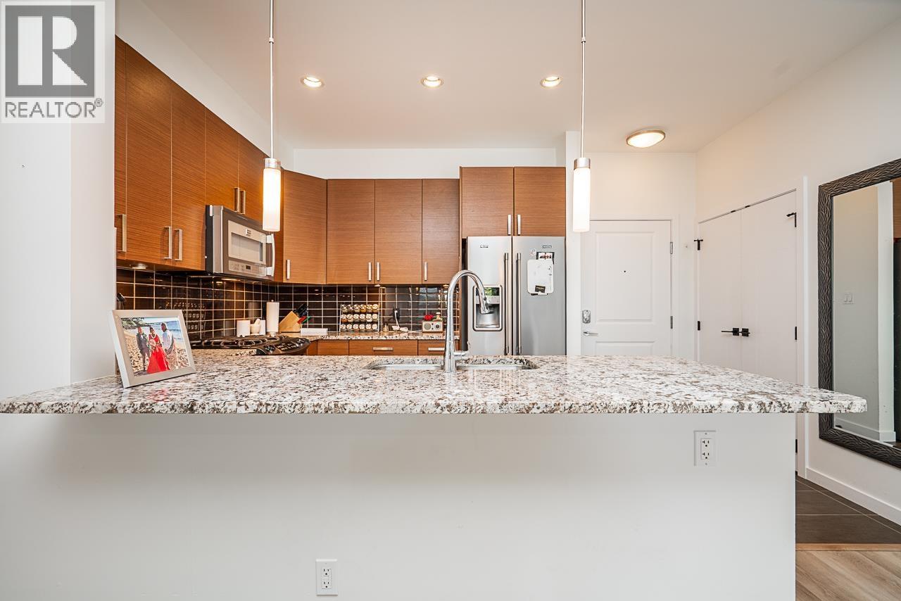VIA - 1 BRRM & DEN home by Boffo! Beautiful kitchen with granite; soft-close cabinetry; stainless Frigidaire appliances-gas cooktop; electric convection oven; fridge w/ice & water; d/w; microwave; w/d; Kohler sinks; floating vanities; soaker tubs; gas f/p; high-end laminate & tile flooring; wooden blind; huge Deck: Keyless electronic security system. Central location walking distance to shopping centre, Walmart, restaurants, Starlight Casino. 5 mins to E/W connector & easy access to Burnaby, Richmond & Vancouver. (id:9345)...