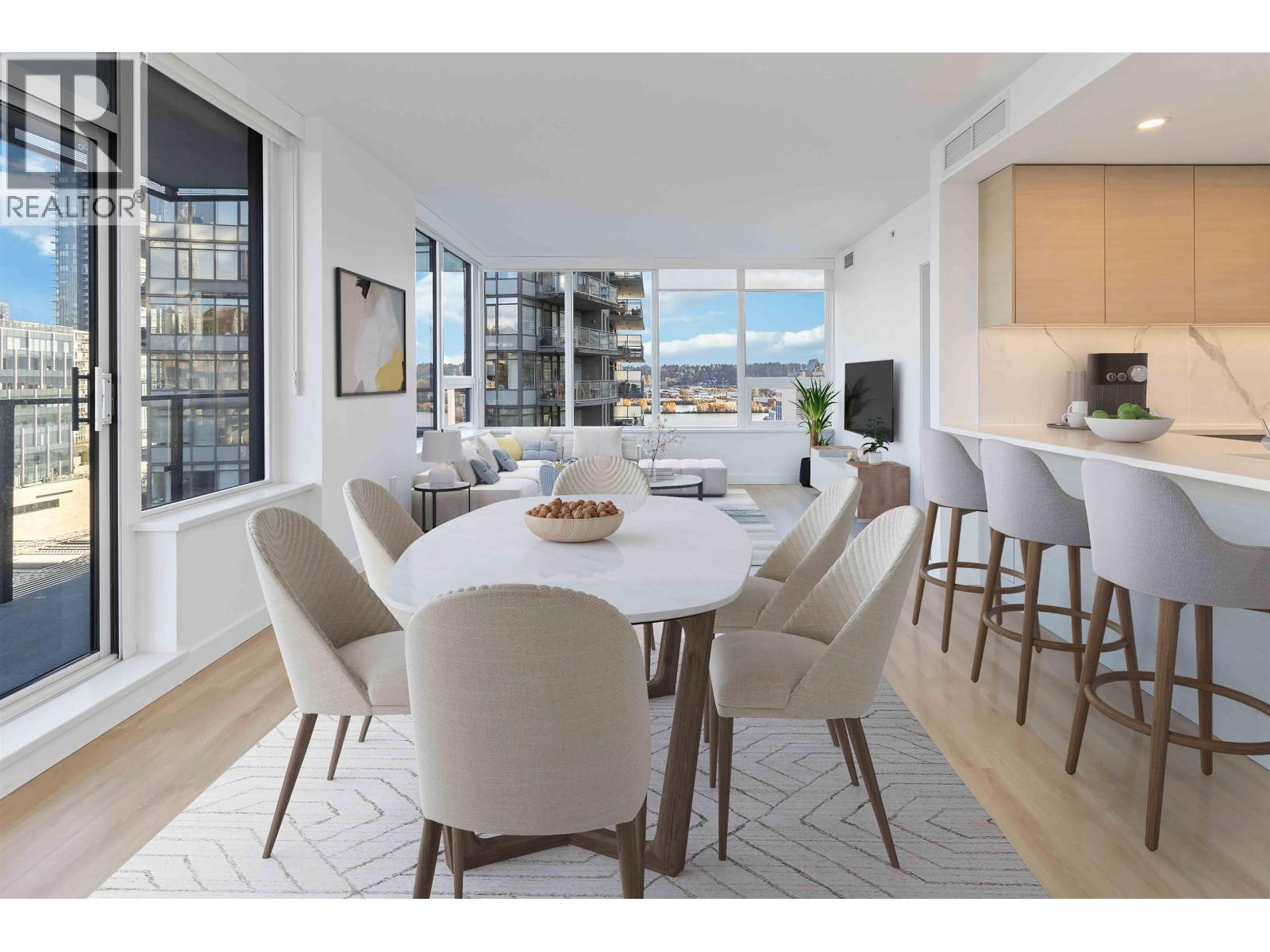 The modern city living in this elegant 2 bedroom, 2 bathroom home with 884 sq/ft. of bright, efficient space. Facing northeast, it features floor-to-ceiling windows, wide-plank laminate floors, and in-suite laundry for everyday comfort. The contemporary kitchen boasts Bosch and Blomberg appliances, quartz countertops, a gas cooktop, and a convection oven. Bathrooms are spa-inspired, with sleek quartz and porcelain finishes. Enjoy 1 EV-ready parking stall, 1 locker, and premium amenities, concierge, fitness center, lounge, and rooftop deck with BBQ, fire pit, and hot tub offering stunning city and mountain views. Located in Downtown New Westminster, steps to the SkyTrain, shops, restaurants, and parks. Reach Metrotown in 11 minutes or Downtown Vancouver in under 30 minutes. (id:9345)...